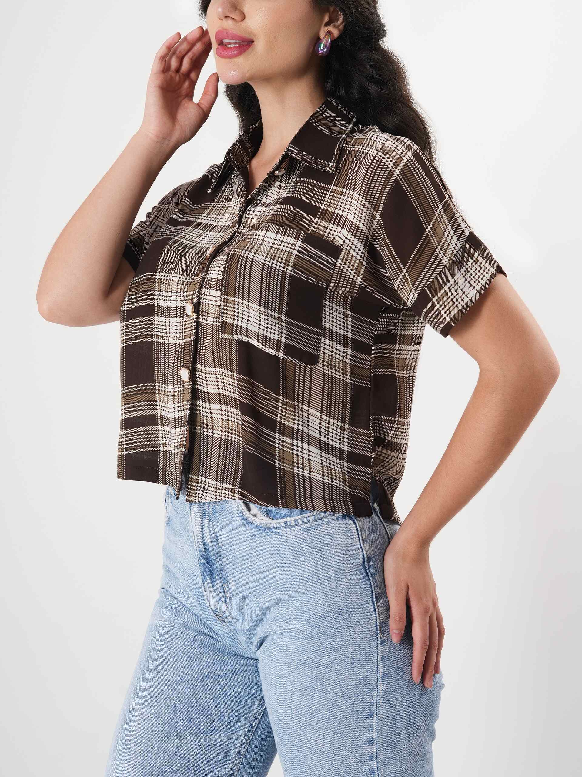 Show off your playful side with our Check Brown Shirt. Made from a comfortable cotton blend, this top features a trendy checkered design and a stylish half sleeve. The pointed collar adds a touch of sophistication. Available in brown, it's easy to care for with gentle machine or hand wash.